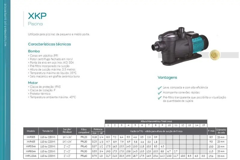 Bomba Autoaspirante Lepono - MB PISCINA XKP1104A 1,0 HP MON 110V PDR