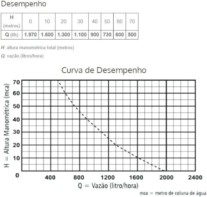 • Vazão máxima: 1.970 litros/hora.