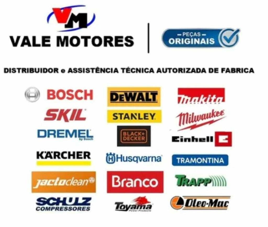 A VALE MOTORES trabalha com Máquinas Elétricas, Ferramentas, Acessórios e Peças de Reposição ORIGINAIS das principais marcas do emrcado, como: Dewalt, Stanley, Black&Decker, Makita, Bosch, Skil, Dremel, Milwaukee, Einhell,Karcher, WAP, Jacto Clean, Guarany, Schulz, Tramontina, Husqvarna, Branco, Bufallo, Toyama e Oleo Mac.